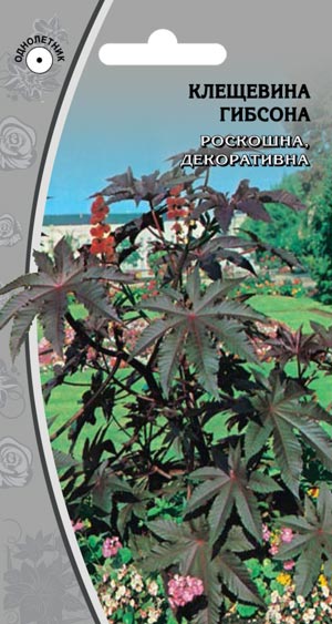 КЛЕЩЕВИНА ГИБСОНА Роскошна, декоративна Лидер одиночных посадок. Крупное травянистое растение высотой 1,5–2,0 м. Стебель прямой, ветвистый. Листья крупные, рассеченные, темно-красного цвета. Предпочитает солнечные места. Используют для декорирования стенок, посадки группами и одиночно на газоне.
